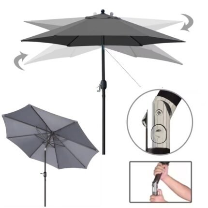 Ombrelone 3 Metros Com Base Preta Manivela Articulado Maresias Para Piscina Cinza – Amz