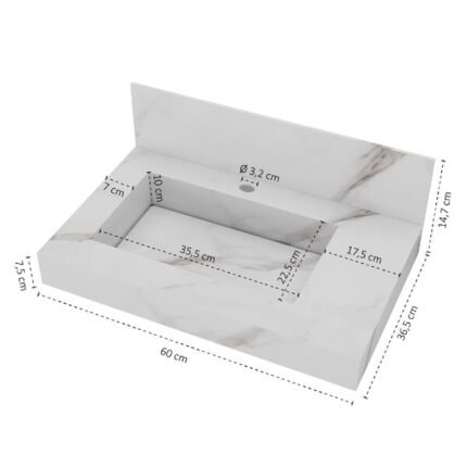 Lavatório Em Porcelanato Para Banheiro Slim 60cm Com Cuba Esculpida Calacata