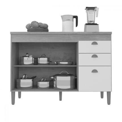 Balcão Gabinete 120cm 3 Portas 2 Gavetas Michigan Branco – Lumil