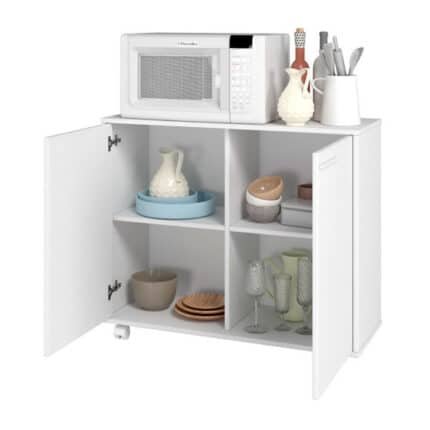Balcão Em Mdp Com 2 Portas 2 Prateleiras E 4 Pés Com Rodízios Brv Móveis