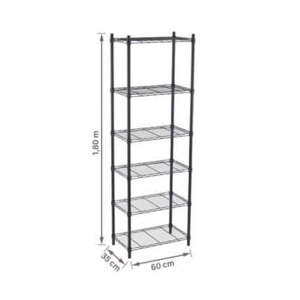Estante de Metal Aço com 6 Prateleiras Preta Line Aramada 180x60x35cm 300kg Spaceo