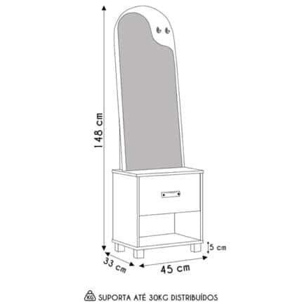 Este toucador é equipado com um ótimo espaço de armazenamento e um espelho deslumbrante, ele é ideal para organizar seus
