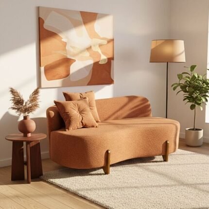 Sofá Orgânico 2 Lugares C/2 Almofadas Curvo Sala Recepção Luna Boucle Terracota – Montanaris Decor