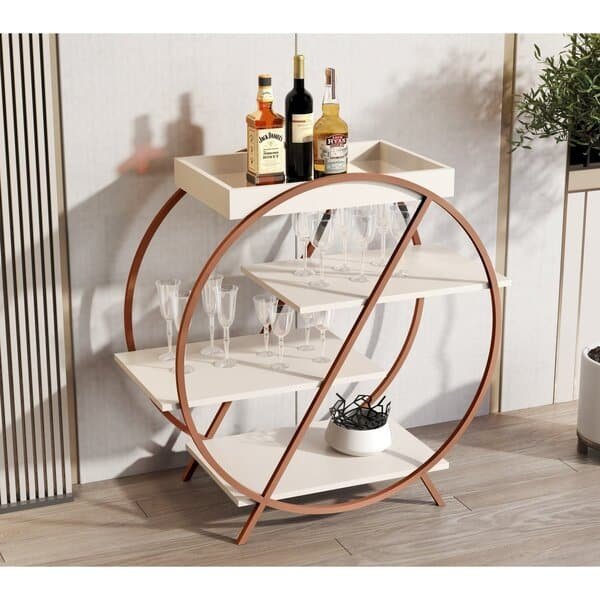 Aparador Bar 3 Prateleiras 1 Bandeja 4009 Pérola