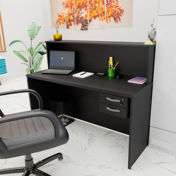 Balcão De Atendimento 15mm 1200×600 Com Gaveteiro – Preto