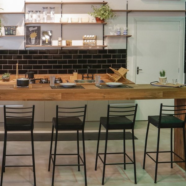 Este é o principal modelo de assento para uso em cozinhas americanas ou balcão de divisória em apartamentos compactos. A peça também pode ser usada em espaços gourmet, em bares, restaurantes, choperias. Assim, é um artigo bastante versátil.