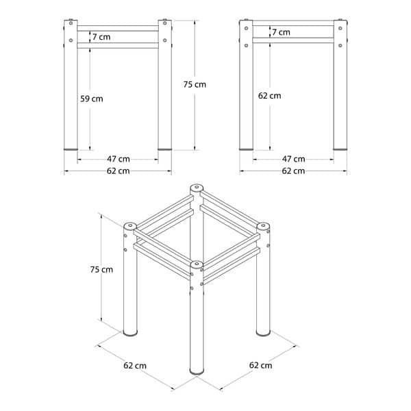 Base de mesa unem praticidade e design em uma casa bem decorada. São ideais para compor ambientes como cozinha, sala de jantar ou áreas de lazer, possibilitando você escolher o tampo que melhor combine com sua decoração, seja de vidro, madeira ou granito. produzida em aço com acabamento anti-ferrugem e pintura eletrostática epóxi, que garante muito mais durabilidade, seus pés possuem bordas emborrachadas evitando que deslize ou risque o piso de sua casa. especificações técnicas ambientes indicados: salas de jantar, cozinha, ou áreas de lazer tampos indicados: madeira, vidro ou granitos tamanho indicado do tampo (largura x profundidade): 70cmt até 80cm x 70cmt até 80cm formato indicado do tampo: quadrado acabamento: pintura eletrostática epóxi cor: branco material estrutura: tubo de aço com proteção anti-ferrugem requer montagem: sim complexibilidade de montagem: fácil, pode ser montado por uma pessoa sozinha peso suportado: 100kg conteúdo da embalagem: 1 base de mesa quantidade de lugares: 4 recomendações de uso, manutenção e limpeza: utilizar um pano seco ou levemente umedecido dimensões altura: 75cm largura: 62cm profundidade: 62cm