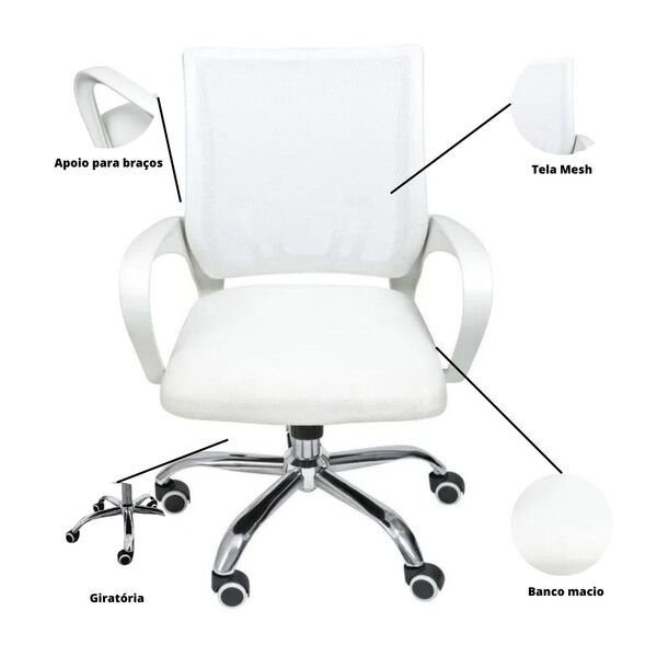 Cadeira De Escritório Begonia Tela Mesh Ergonômica Branco