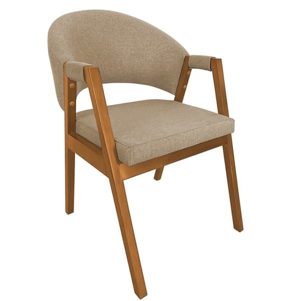 Cadeira De Jantar Hellen Base Madeira Cerejeira Linho Bege