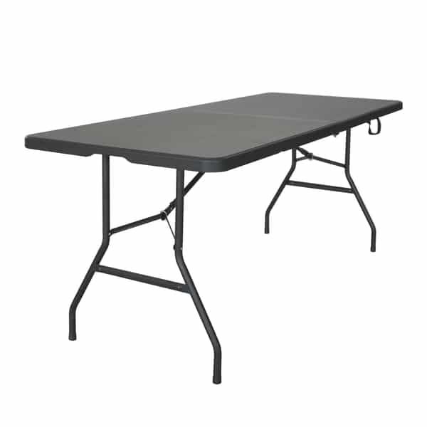 Mesa de Jardim Dobrável 6 Lugares Retangular 74x74x180cm Aço Preto Recife Plicosa