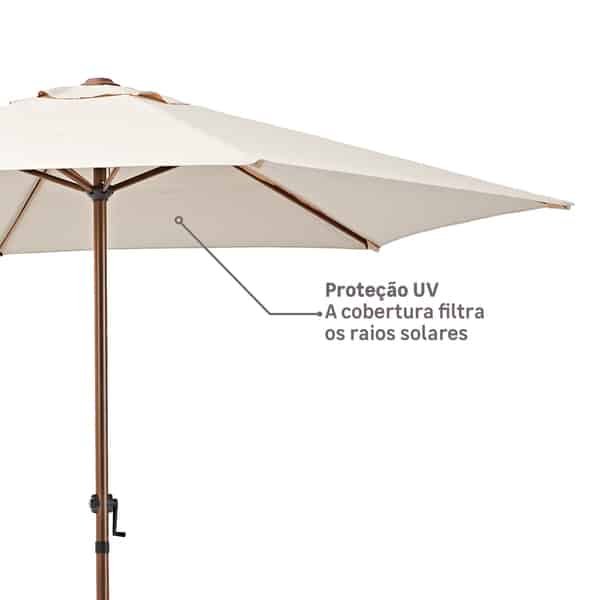 Proteção UV:A cobertura em poliéster filtra 90% dos raios solares para que você possa aproveitar de seu momento de lazer com conforto e tranquilidade.
