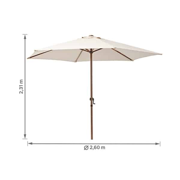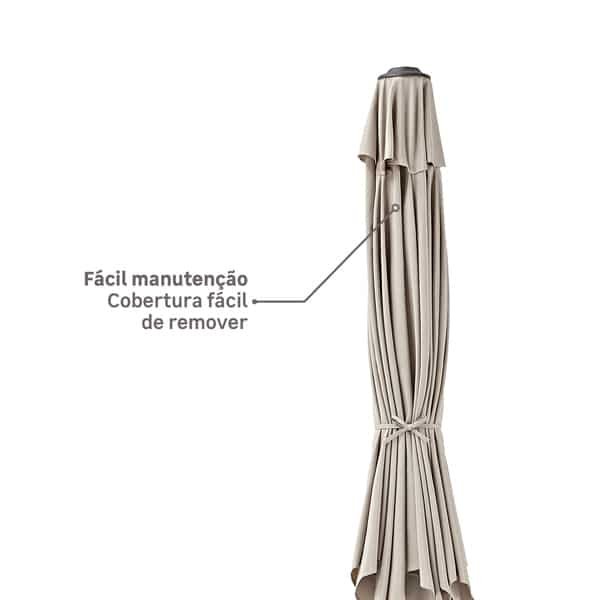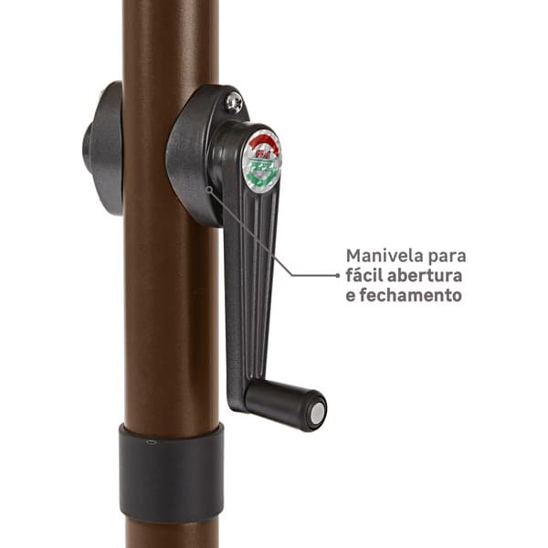 A manivela presente na estrutura permite a abertura e fechamento do produto para que fique muito mais fácil a instalação ou armazenamento do ombrelone.