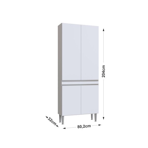 Paneleiro duplo 4 portas athena branco. O paneleiro duplo athena é um produto com excelente qualidade, produzido em mdp de fácil montagem, com 2 portas fixadas com dobradiças metálicas e puxadores me alumínio. Facilitando a organização dos seus utensílios em geral, possui também pés com regulagem de altura deixando assim sua casa com um ambiente mais moderno e aconchegante. Estilo: moderno peso (kg): 40 garantia: 03 meses altura (cm): 204 acabamento: laca largura (cm): 80.2 possui pés: 4 cor dos pés: cinza tipo de porta: bater altura dos pés: 17 pés reguláveis: sim possui gavetas: não possui rodízio: não suporta até (kg): 35 possui espelhos: não profundidade (cm): 32 escala de brilho: brilhante material dos pés: polipropileno serviço montagem: 114259443 material da porta: mdp origem do produto: nacional tipo de paneleiro: paneleiro duplo acabamento dos pés: polipropileno ambiente principal: cozinha material principal: mdp acabamento da porta: laca material do puxador: alumínio sapatas niveladoras: não material da prateleira: mdp acabamento da prateleira: pintura uv tipo de puxador da porta: externo escala de brilho da porta: brilhante peso máximo por prateleira: 5 tipo de armário de cozinha: paneleiro material do puxador da porta: alumínio material do puxador da gaveta: alumínio escala de brilho da prateleira: brilhante tipo de dobradiça/corrediça da porta: simples material da dobradiça/corrediça da porta: metálica fabricante: irm marca: irm cor interna: branco cor do produto: branco itens inclusos: 1 paneleiro, kit ferragens e manual de montagem cor predominante: branco linha ou coleção: athena quantidade de gavetas: não possui