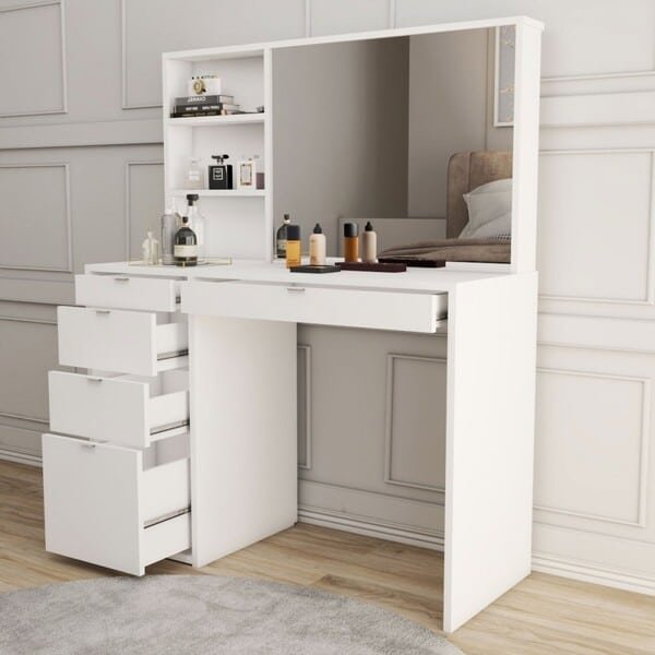 Penteadeira Maria 5 Gavetas 2 Prateleiras Branco – Panorama Móveis